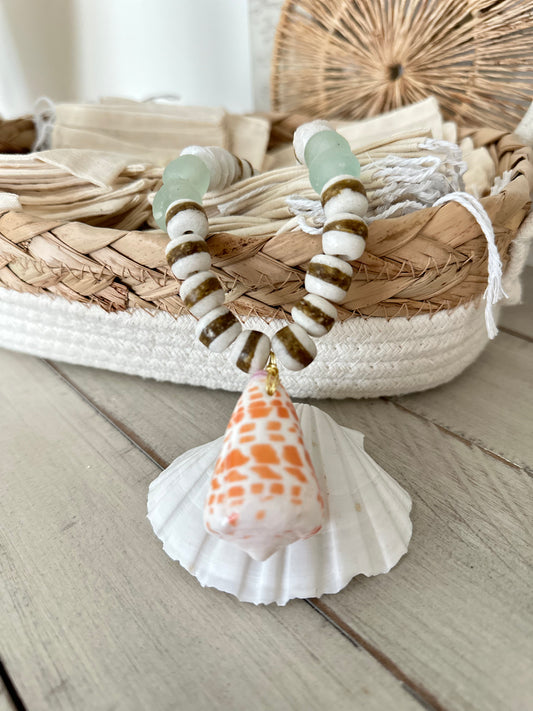 Washed Ashore Long Hebrew Cone + Sea-glass Necklace