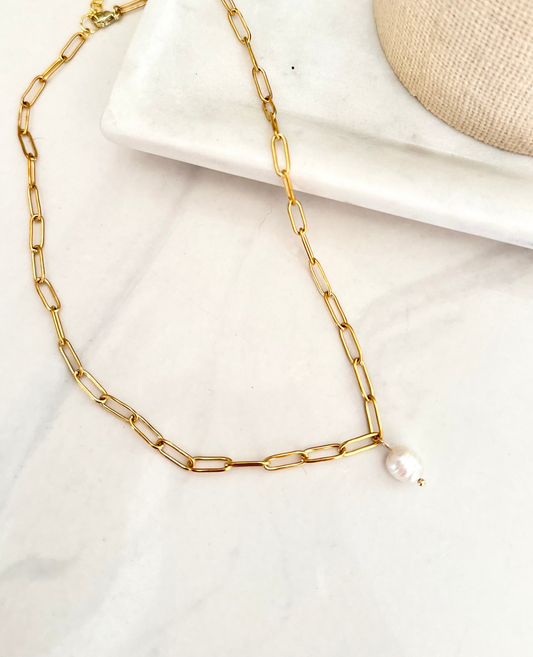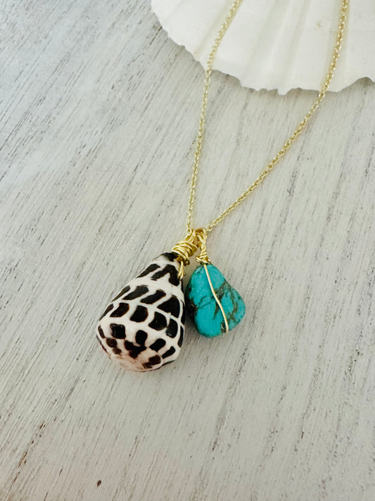 ‘Kiawah Curve’ Paperclip + Turquoise Gemstone Necklace