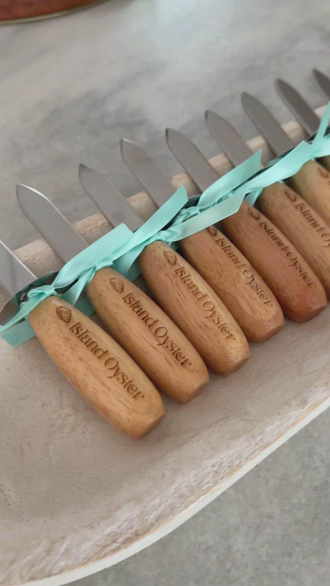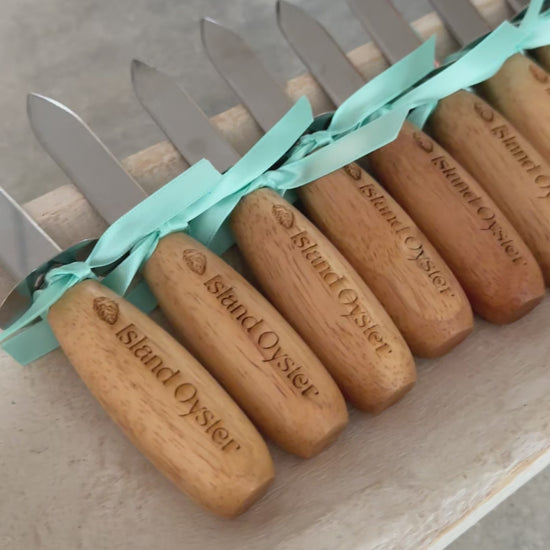 This beautifully crafted oyster knife features a light, natural wooden handle engraved with our Island Oyster logo and signature shell design. The larger handle offers a comfortable, sturdy grip, while the thick stainless steel blade gives you the strength and precision needed to open oysters safely and smoothly.